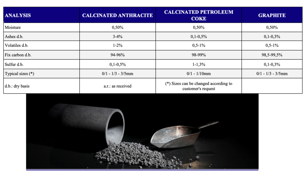 • Recarburizers: calcined anthracite, calcined petroleum coke (CPC), graphite